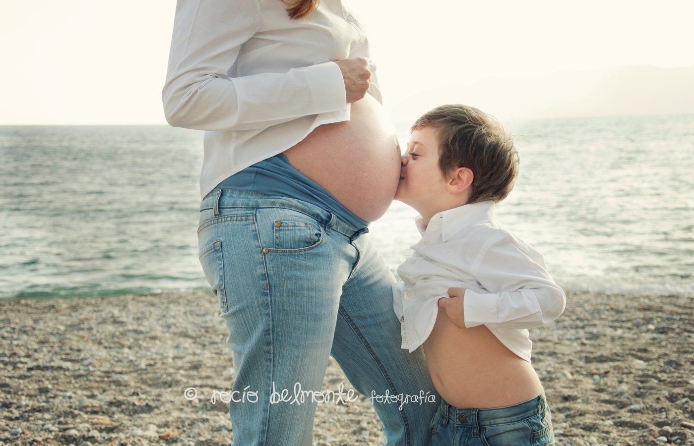 Ya había tenido alguna sesión de embarazada con niños y creerme que son súper divertidas de hacer pero jamás pensé que podrían llegar a serlo tanto. En las sesiones con niños hay que jugar con ellos para que tomen confianza para después conseguir que hagan cosas como darles besitos en la barriga a su mamá, pero con este niño no hizo mucha falta entretenerlo porque es muy cariñoso y está deseando conocer a su hermana. Me quedé con la boca abierta cuando su mamá se abrió un poco la camisa para que le diese un beso y él se la levantó consiguiendo una foto que por muchos años que pasen a mi me va a seguir sacando una sonrisa.